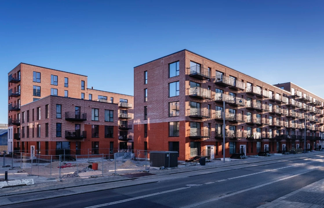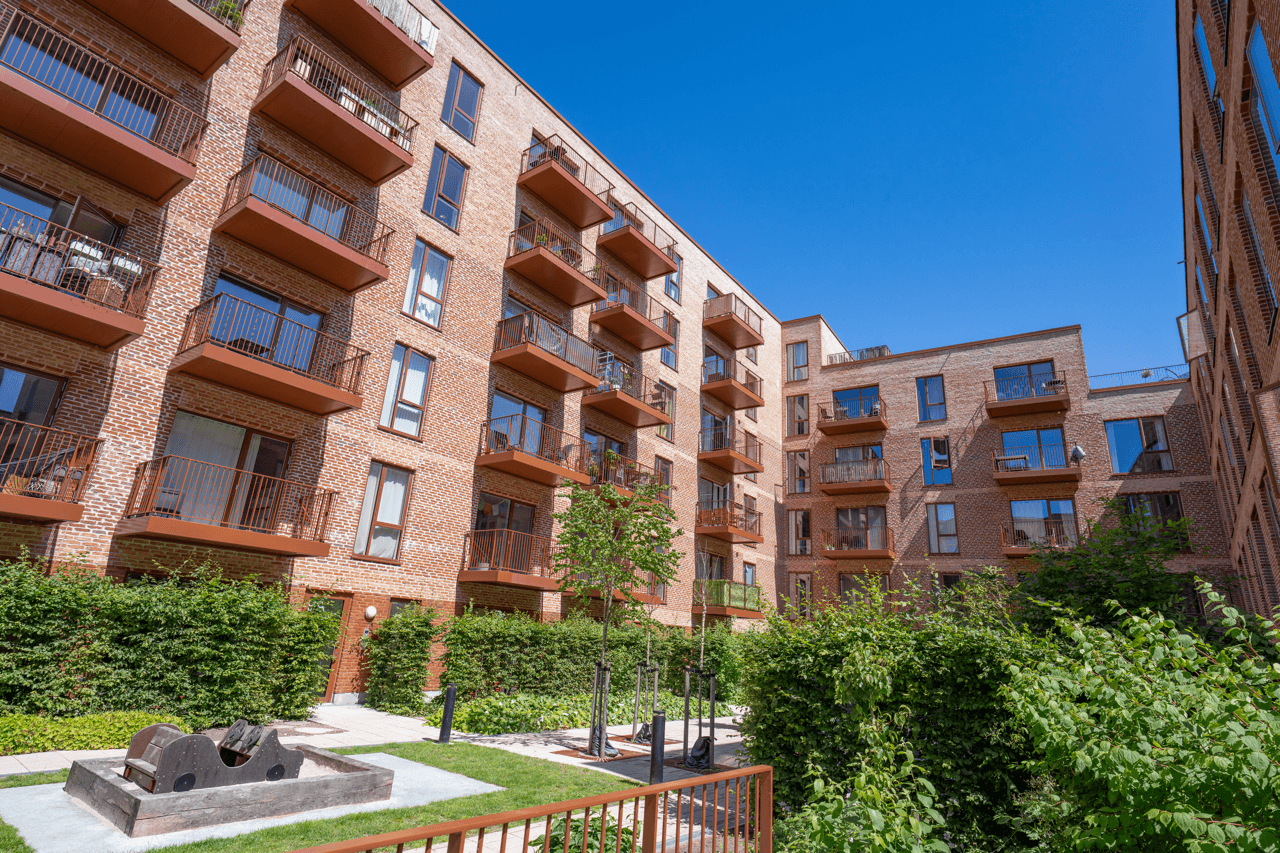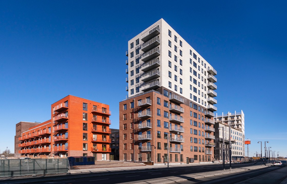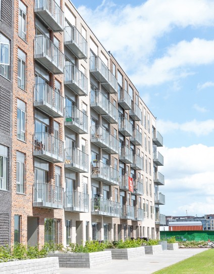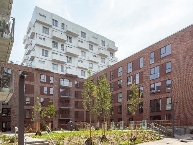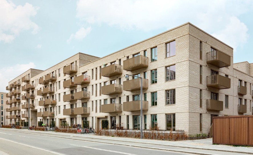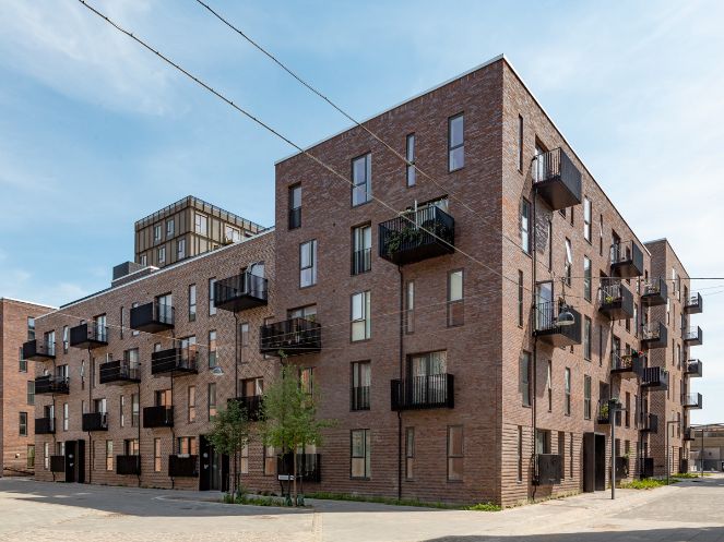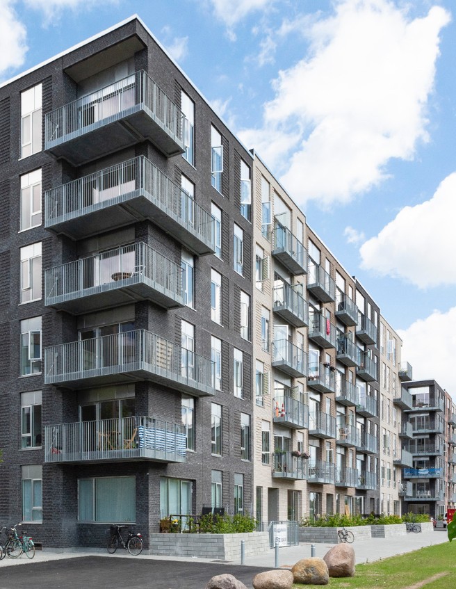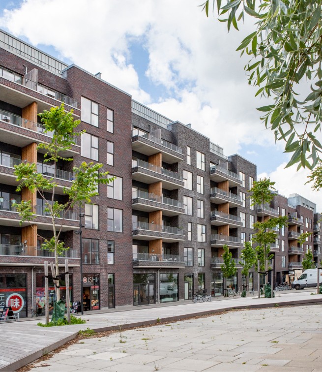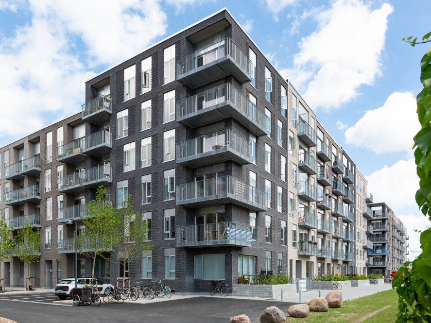 Byggeriet ligger klods op adnaturskønne Amager Fælled og byder på 199 lejeboliger fordelt på 2-5 værelser.