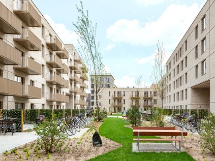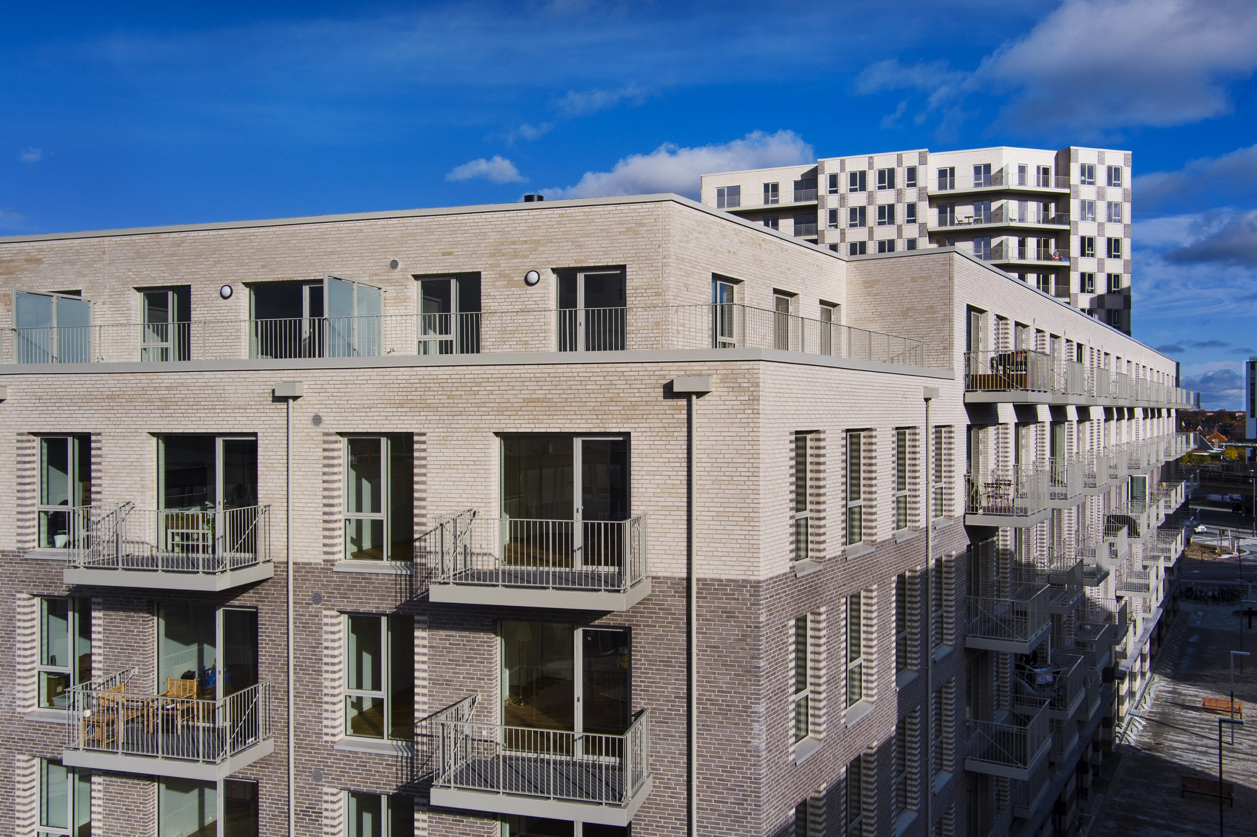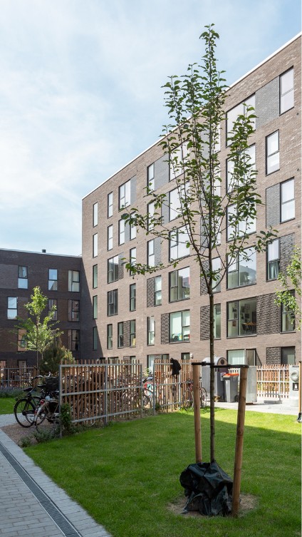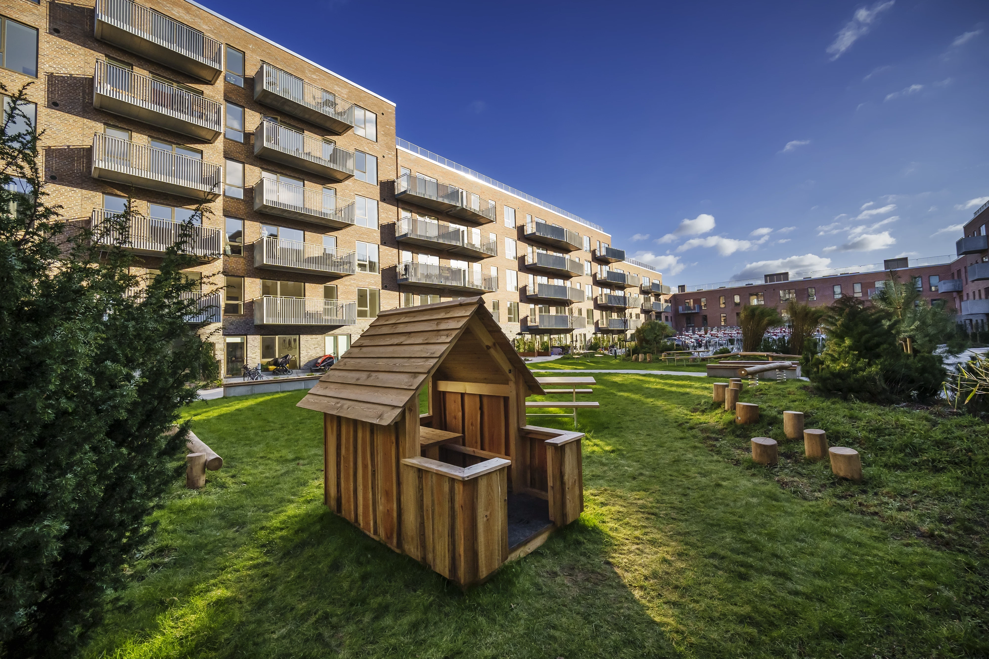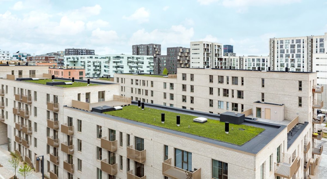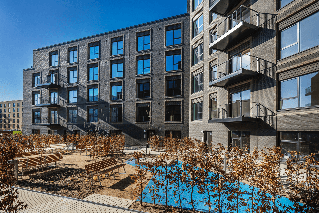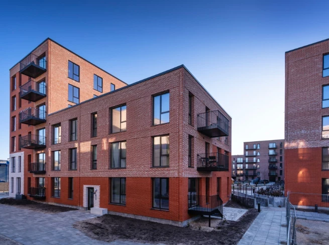 Byggeriet ligger klods op adnaturskønne Amager Fælled og byder på 199 lejeboliger fordelt på 2-5 værelser.