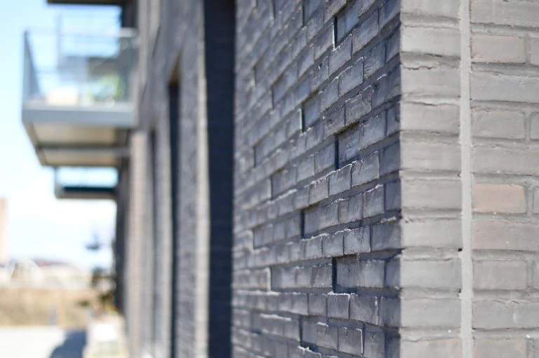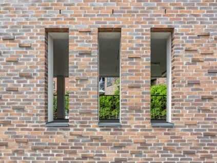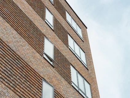 Facaderne er opført i håndstrøgne teglsten med reference til klassisk, dansk murstensbyggeri. De mørke mursten suppleres af lysere rammer omkring vinduerne, som skaber dybde og giver facaden et levende udtryk.
