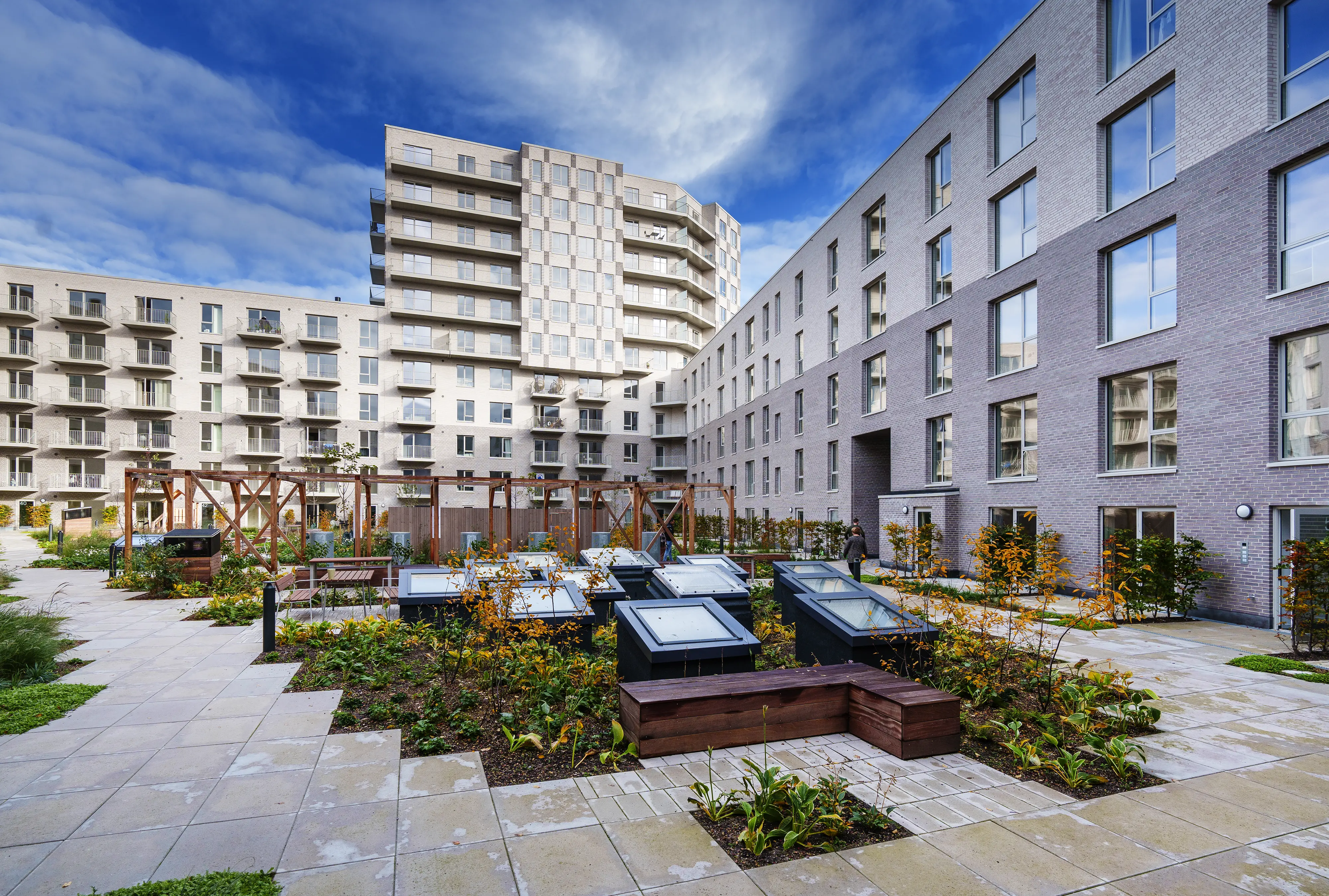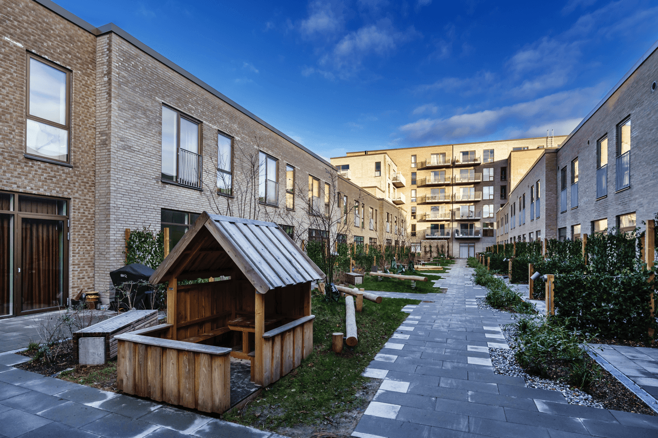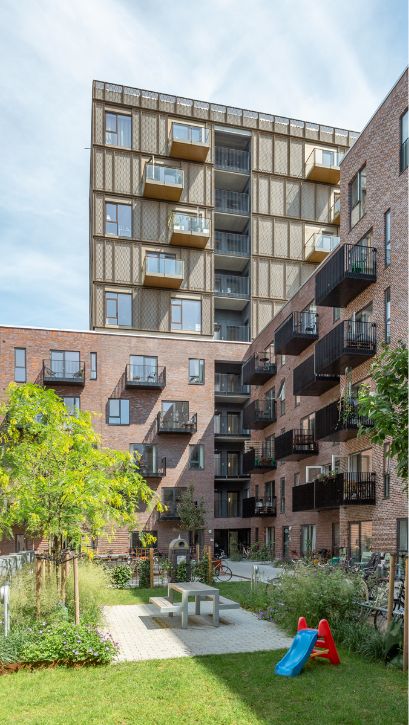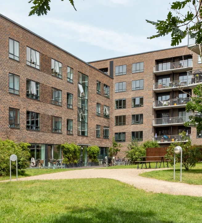 Lejeboliger midt i Ørestad skabt med omtanke for både æstetik, miljø og livskvalitet. Bygningerne centrerer sig omkring en lukket midte og flankerer et smukt indre gårdrum - et grønt åndehul midt i bebyggelsen.