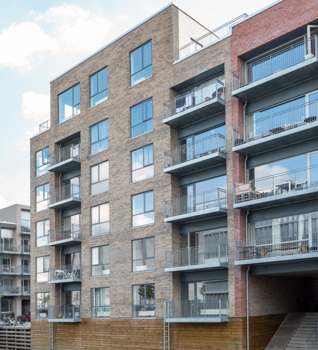 Bygningen opføres med teglfacader og med tegl på altanerne. Der er mange forskellige lejlighedstyper dog med hovedvægten på 3 og 4 værelses lejligheder på ca. 95 m².